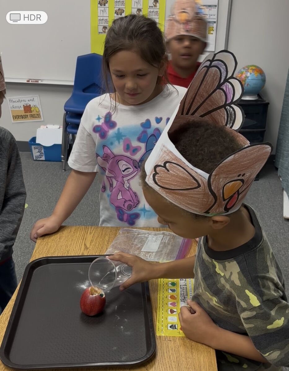 We learned about volcanoes and geysers today. Then we made apple